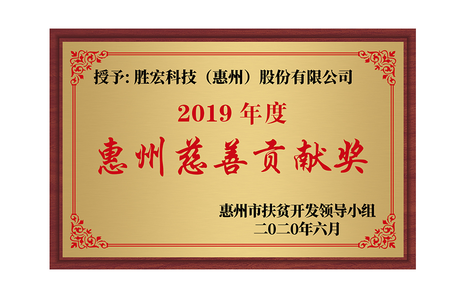 獲得2019年惠州市慈善貢獻獎
